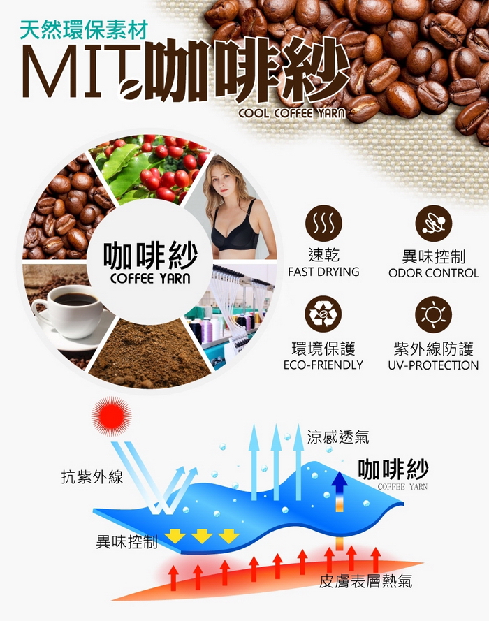 內襯採用咖啡紗透氣網布,具有速乾抗菌除臭功能