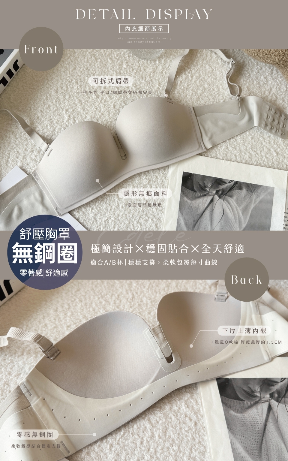 可拆式肩帶:一件多穿,平口/細肩帶穿搭都完美