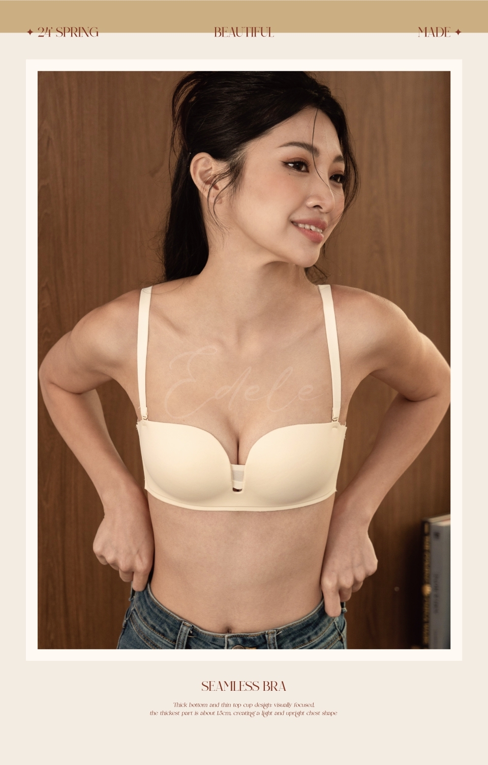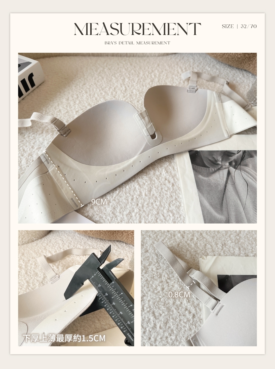 下厚上薄罩杯設計:視覺自然集中,最厚處約1.5cm,打造輕盈挺立胸型