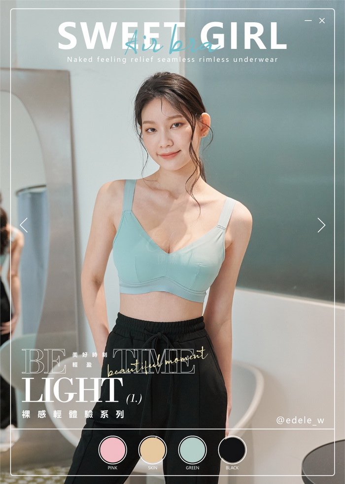 輕甜少女的裸感輕體驗,內衣採用無痕布,擁有親膚絲滑的柔順觸感