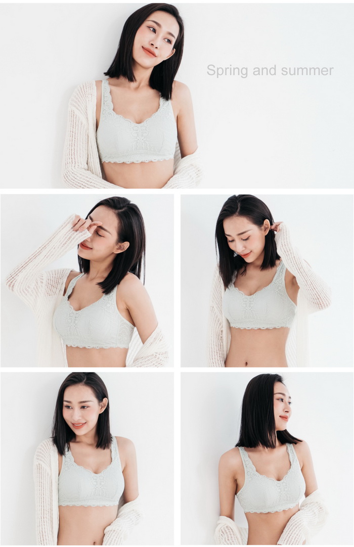 內衣【輕量無鋼圈美型蕾絲內衣】日本熱銷輕機能內衣 L-XXXL (綠灰)#100235