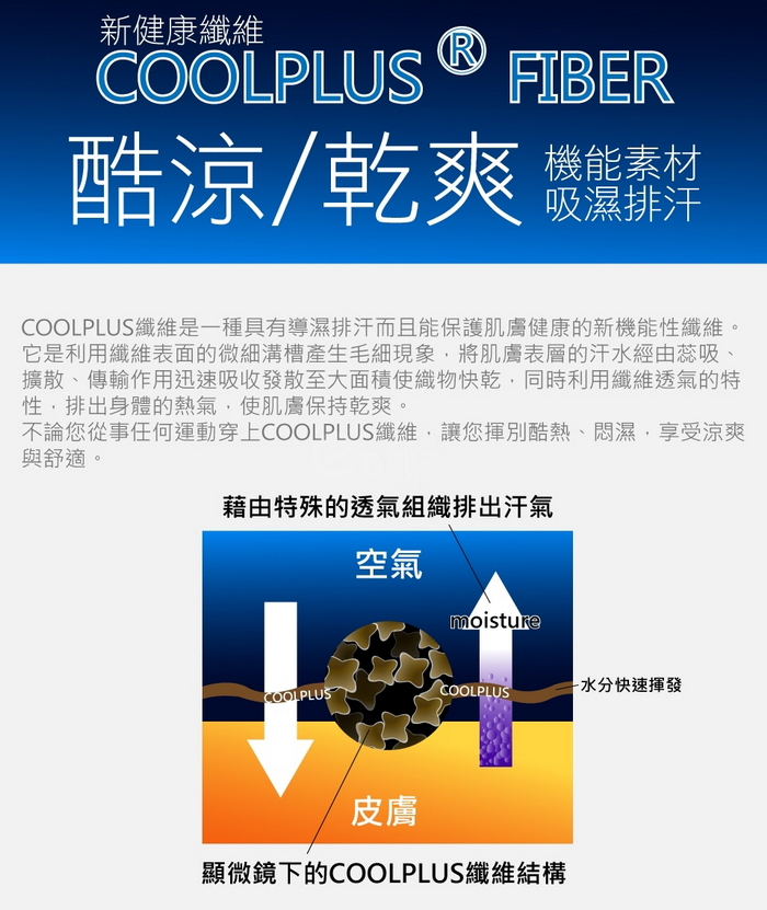 ★新健康涼感纖維(COOLPLUS)能迅速排除體內熱氣,享受涼爽與舒適。