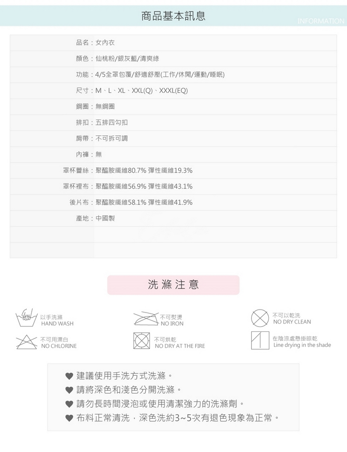 內衣採用嬰兒棉, 單向導濕布,流汗後瞬間超乾爽