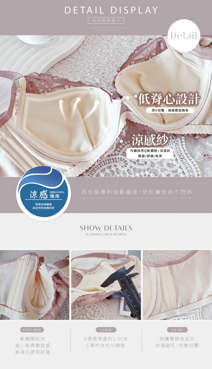"內襯採用Q軟襯墊+涼感紗"