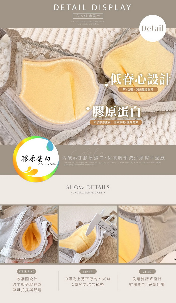 內裡採用透氣軟Q棉和添加膠原蛋白保養胸部