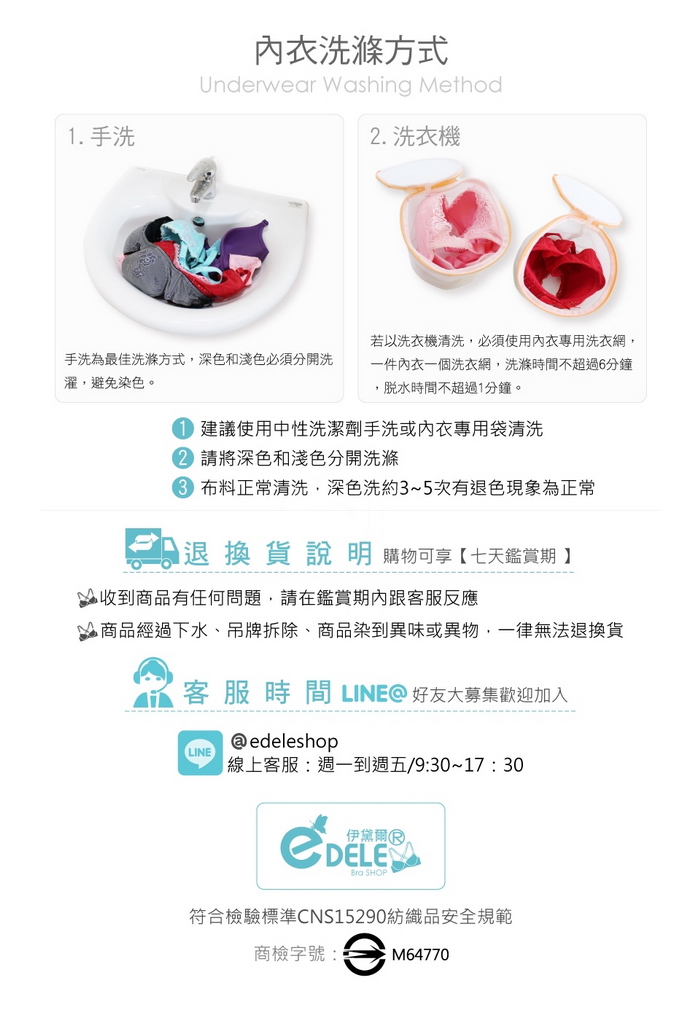 C-E罩杯皆附有QQ襯墊,罩杯為可拆式襯墊,最厚約1.5CM