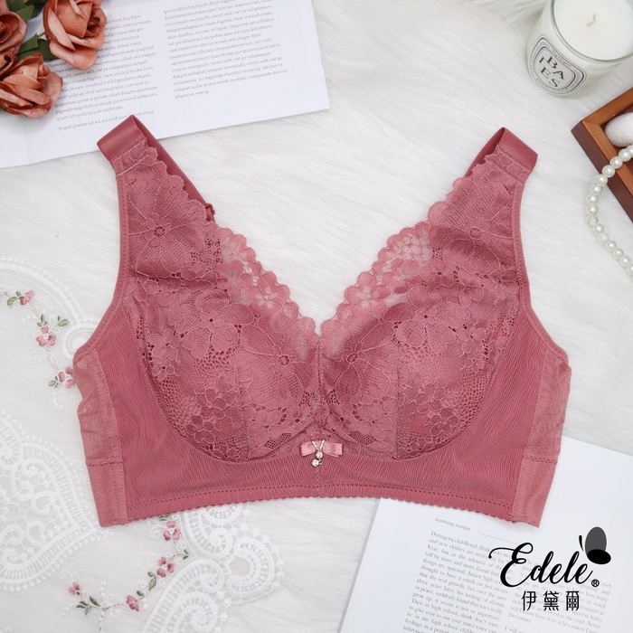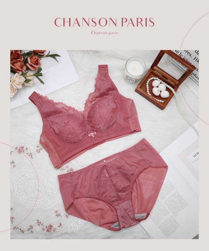 香頌巴黎 (魅力歐洲)全蠶絲深V豐乳無鋼圈內衣 (橘紅)