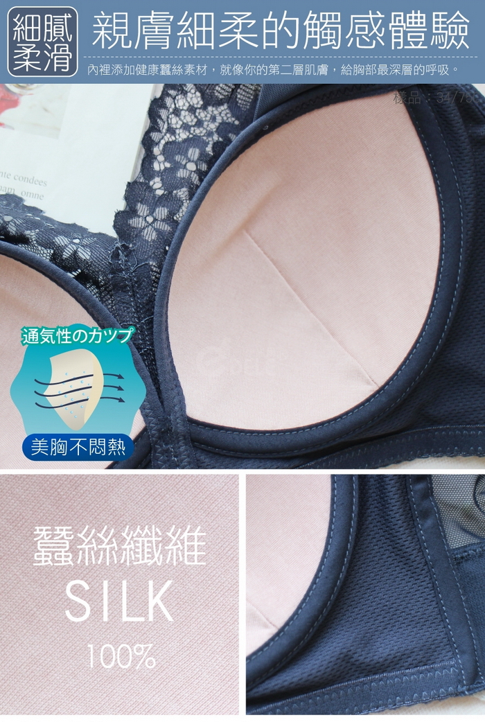 創新添加大自然100%蠶絲面料,進一步增加文胸的透氣性,真正展現會呼吸的調整型內衣