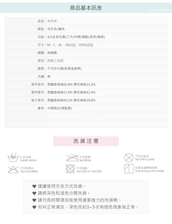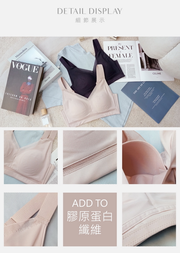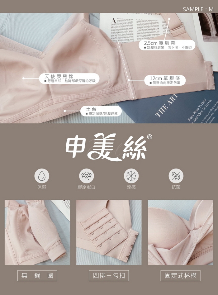 內衣採用申美絲布料, 媲美膠原蛋白般細柔滑順。