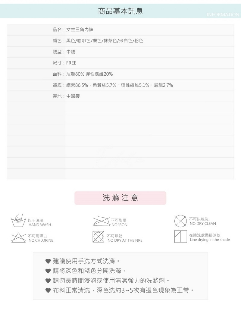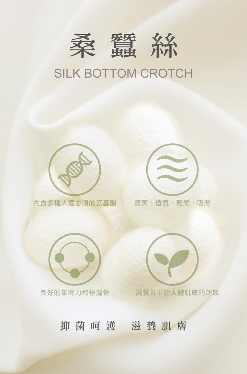 褲底添加桑蠶絲,抑菌呵護、溫柔呵護私密肌
