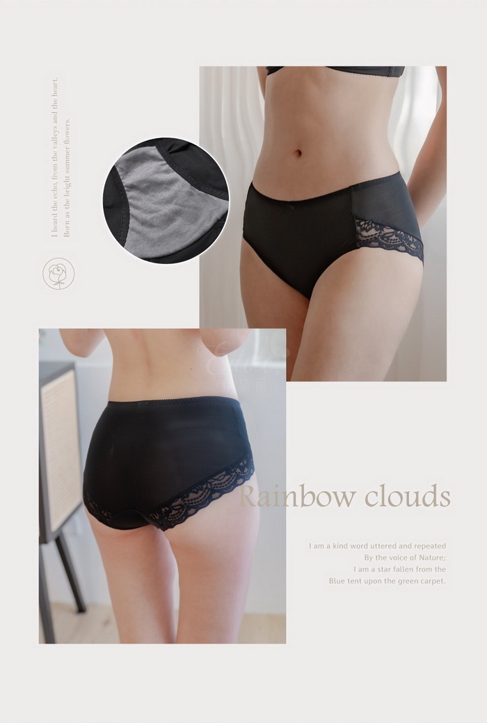 內褲【彩虹雲朵】蕾絲內褲 M-XL (黑) #3501
