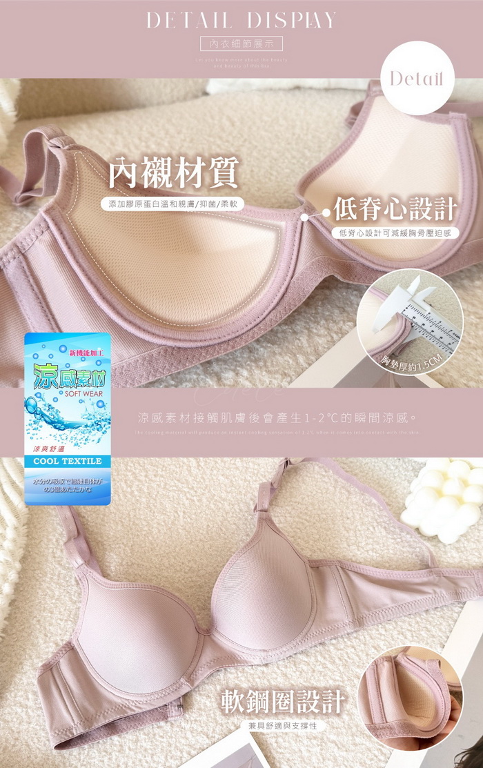 軟鋼圈內衣,兼具舒適與支撐性,吸濕排汗,乾爽透氣