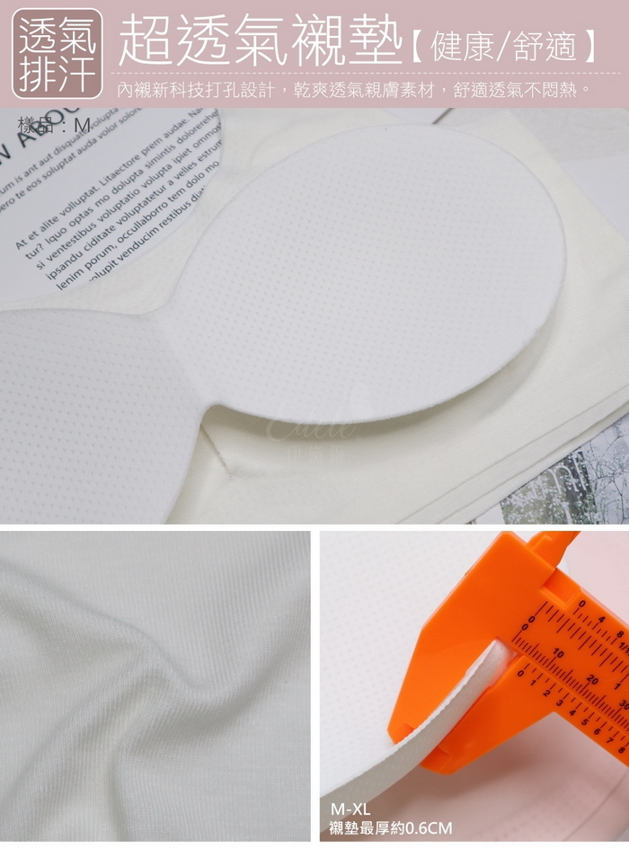 【可拆式胸墊】設計,讓小朋友在穿著上有安全感。