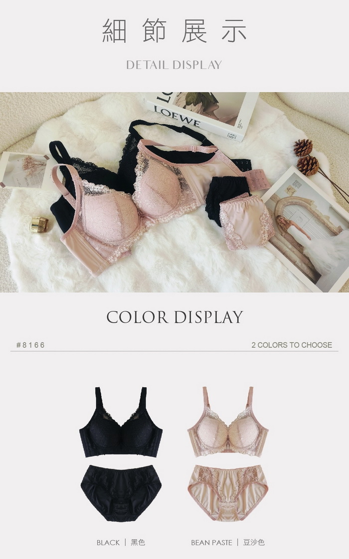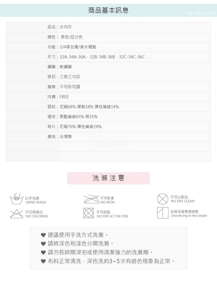 3/4罩造型,P-UP剪接從脅邊集中,營造優美乳溝線條