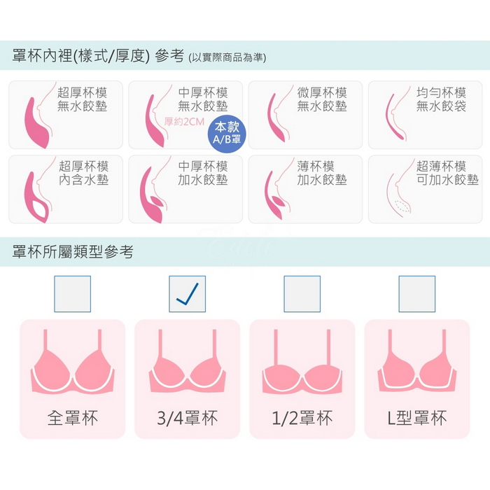 A/B罩杯水襯墊最厚約2CM